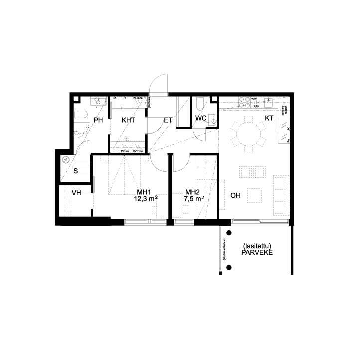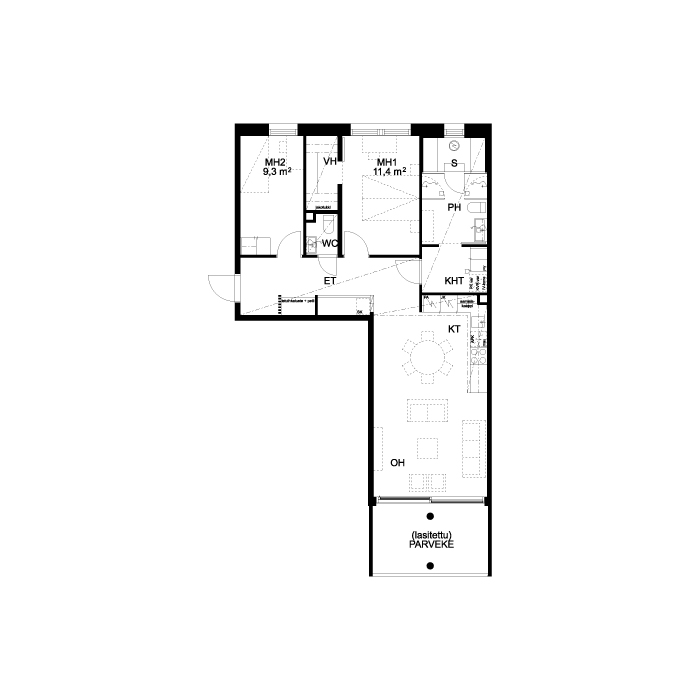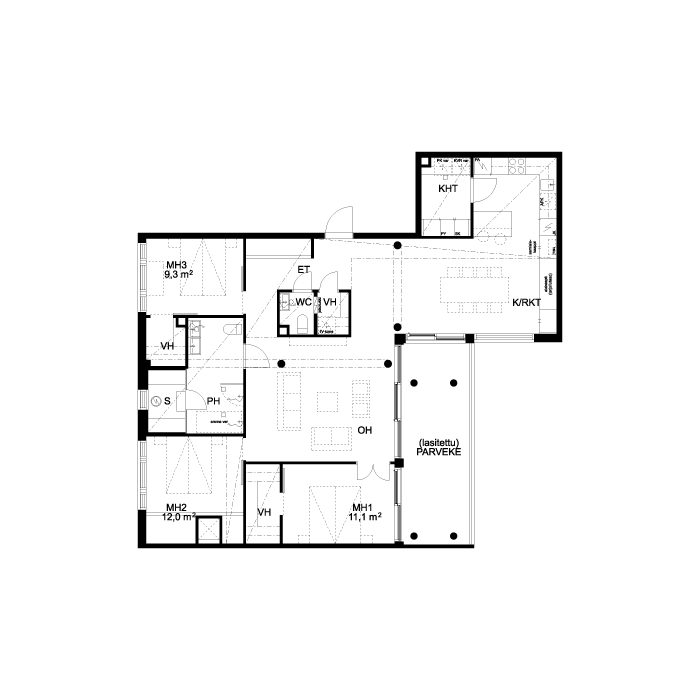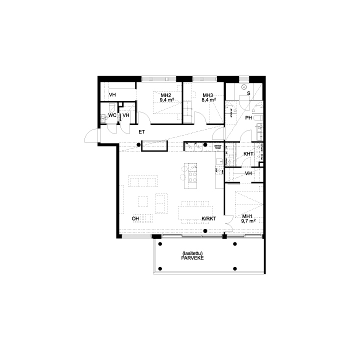 | Huoneluku | 3h+kt+s |